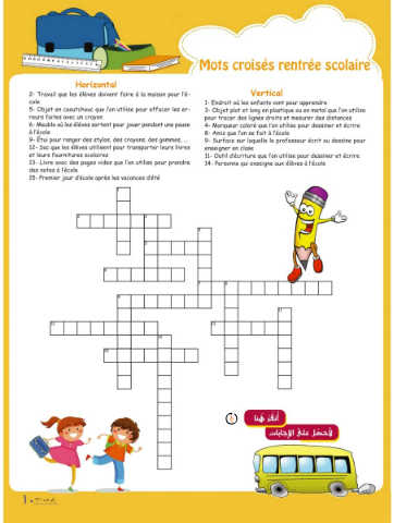 Mots croisés rentrée scolaire
